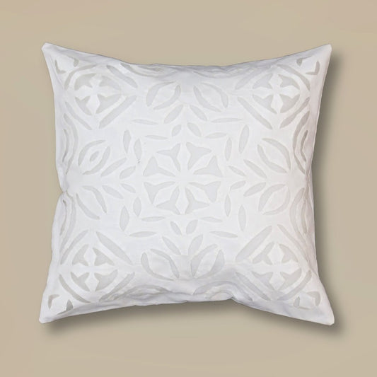 Applique Work Cotton Cushion Cover in Off-White (Set of 1/2/4) | 16 x 16 inches | Handmade