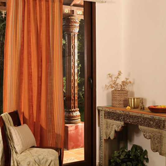 Apricot Rust Cotton Door Curtain | Length 7ft | Marigold Collection