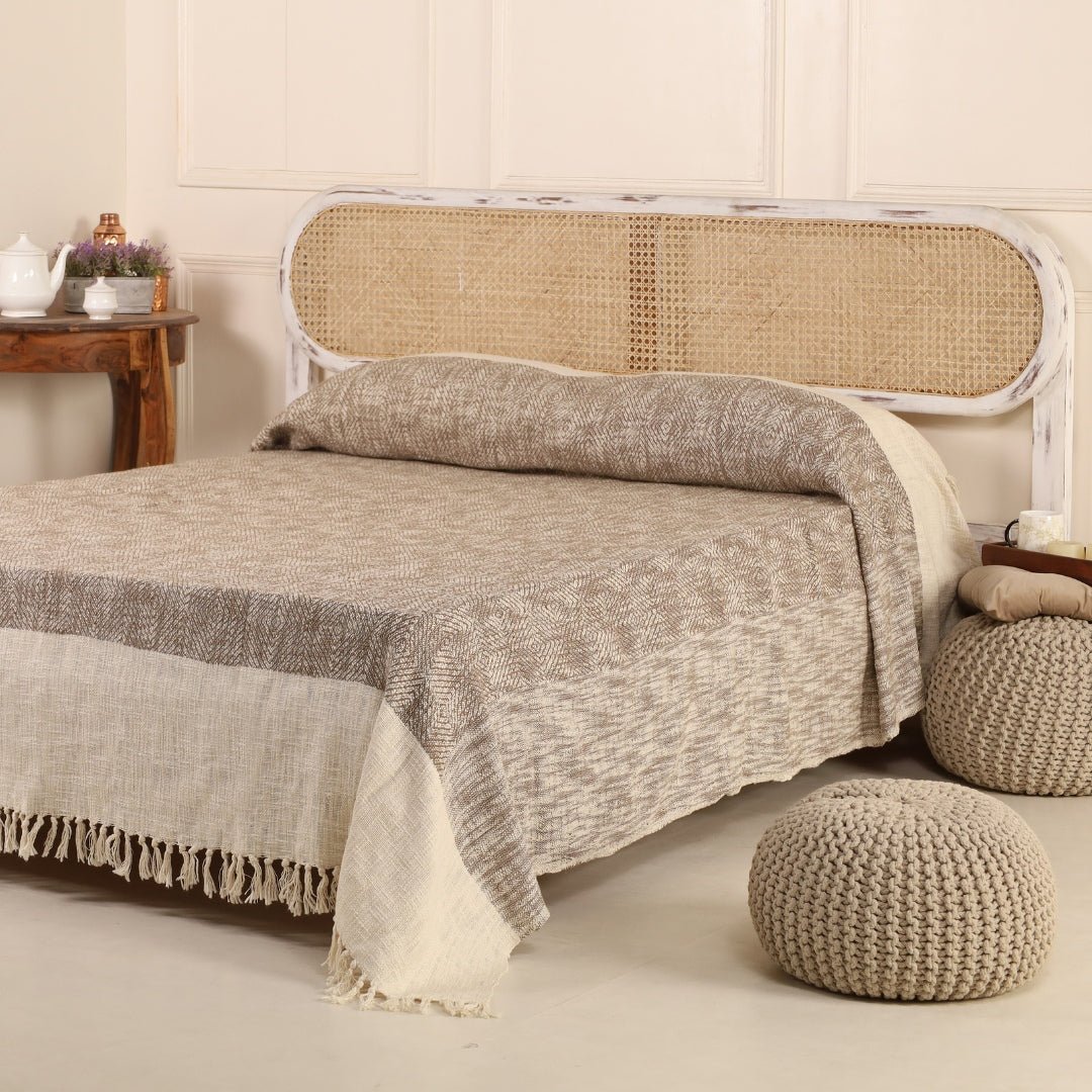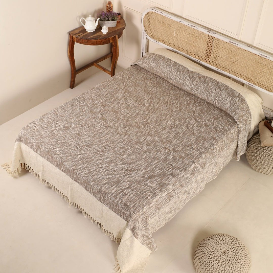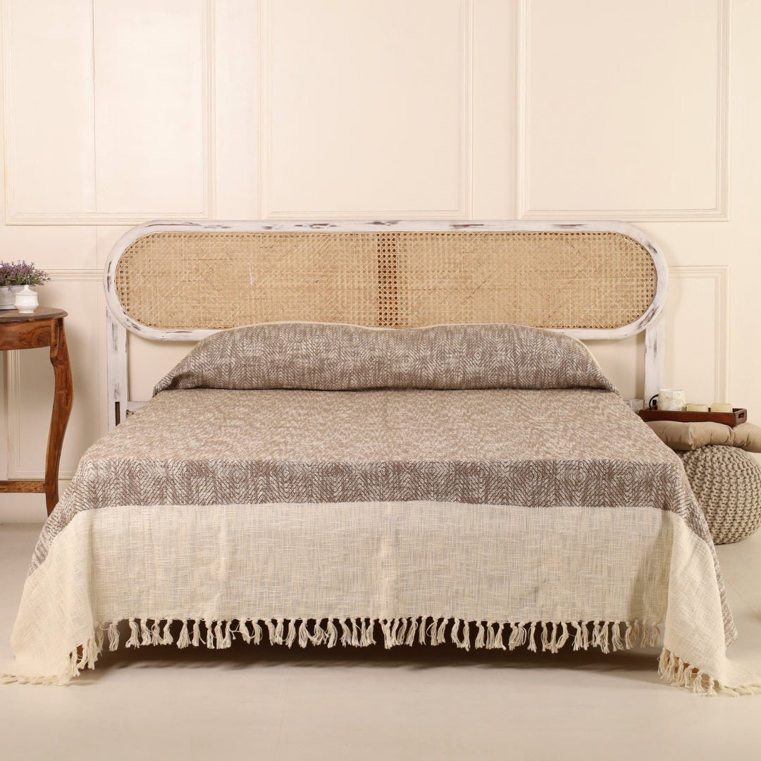 Cotton Bed Cover In Earthy Brown | Queen Size | Handmade In India
