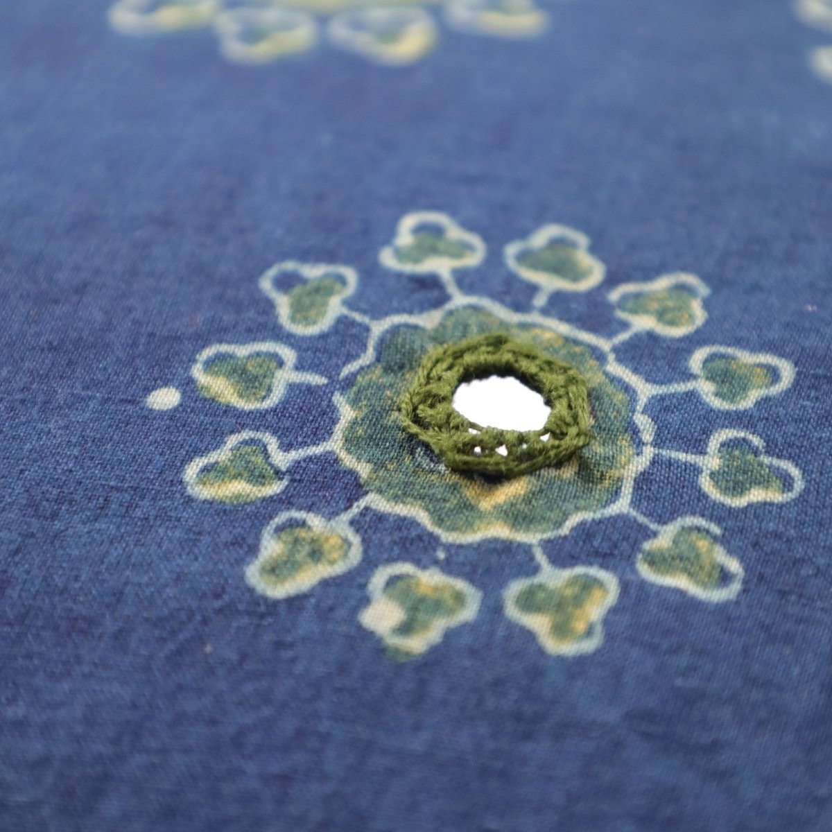 The Ajrakh printing technique is said to be nearly 4,500 years old. Ajrakh is an ancient vegetable dyeing and resists the block-printing technique done on cloth. The process of 'Ajrakh' is a long drawn process involving many stages of printing. Each layer of visible color is printed after a gap of time so the cloth has time to cure for the day, giving it its unique name (aaj-rakh). Originating in Sindh, Pakistan, and presently crafted by artisans in Kutch and parts of rajasthan, Ajrakh block printing uses motifs inspired by nature.