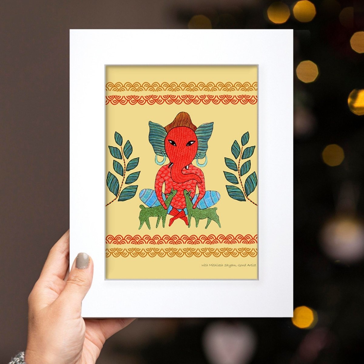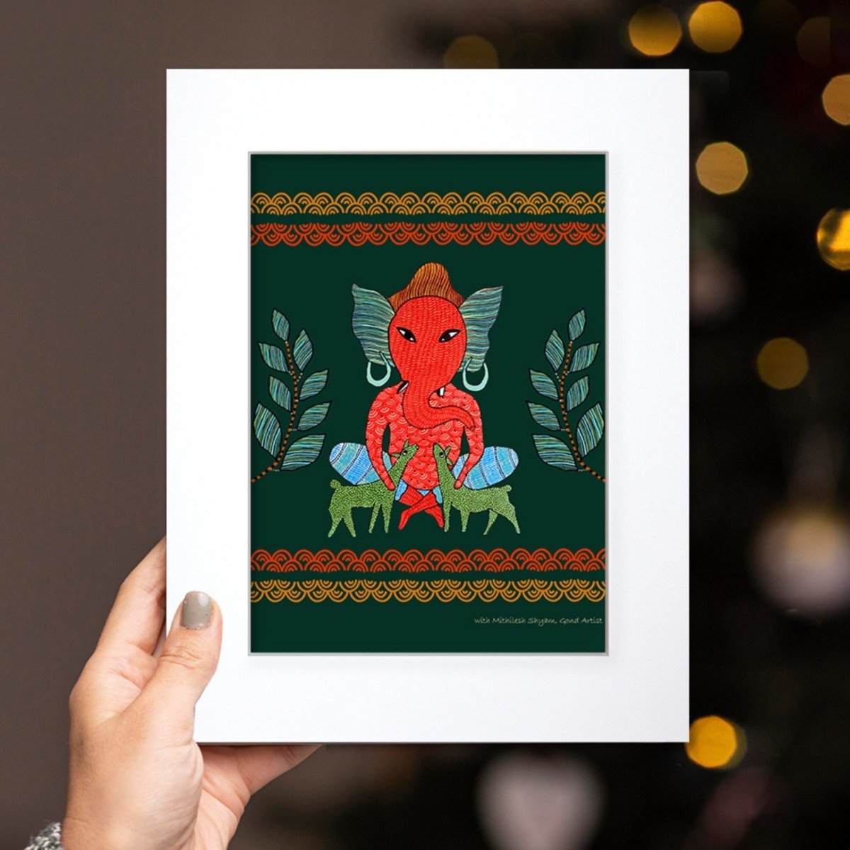 This Gond Art series of Lord Ganesha is a collaboration with Bhopal based Mithilesh, who is part of the young generation of artists who are taking forward the age-old legacy, using the same techniques and themes that make Gond art so unique.