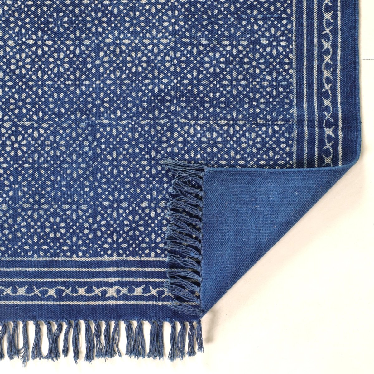 Indigo Cotton Block Printed Rug In 3 x 5 ft | Lattice Print | Handcrafted In India