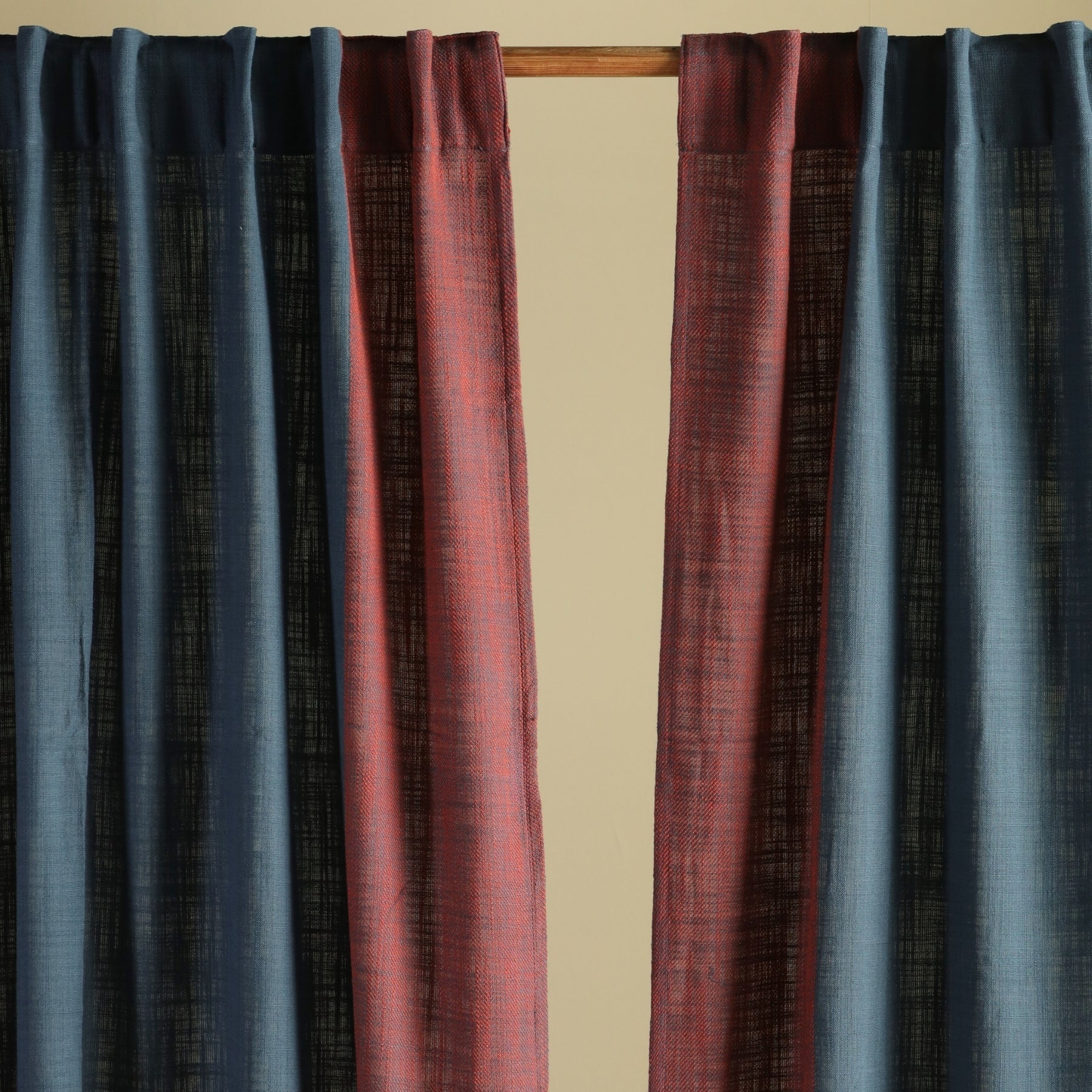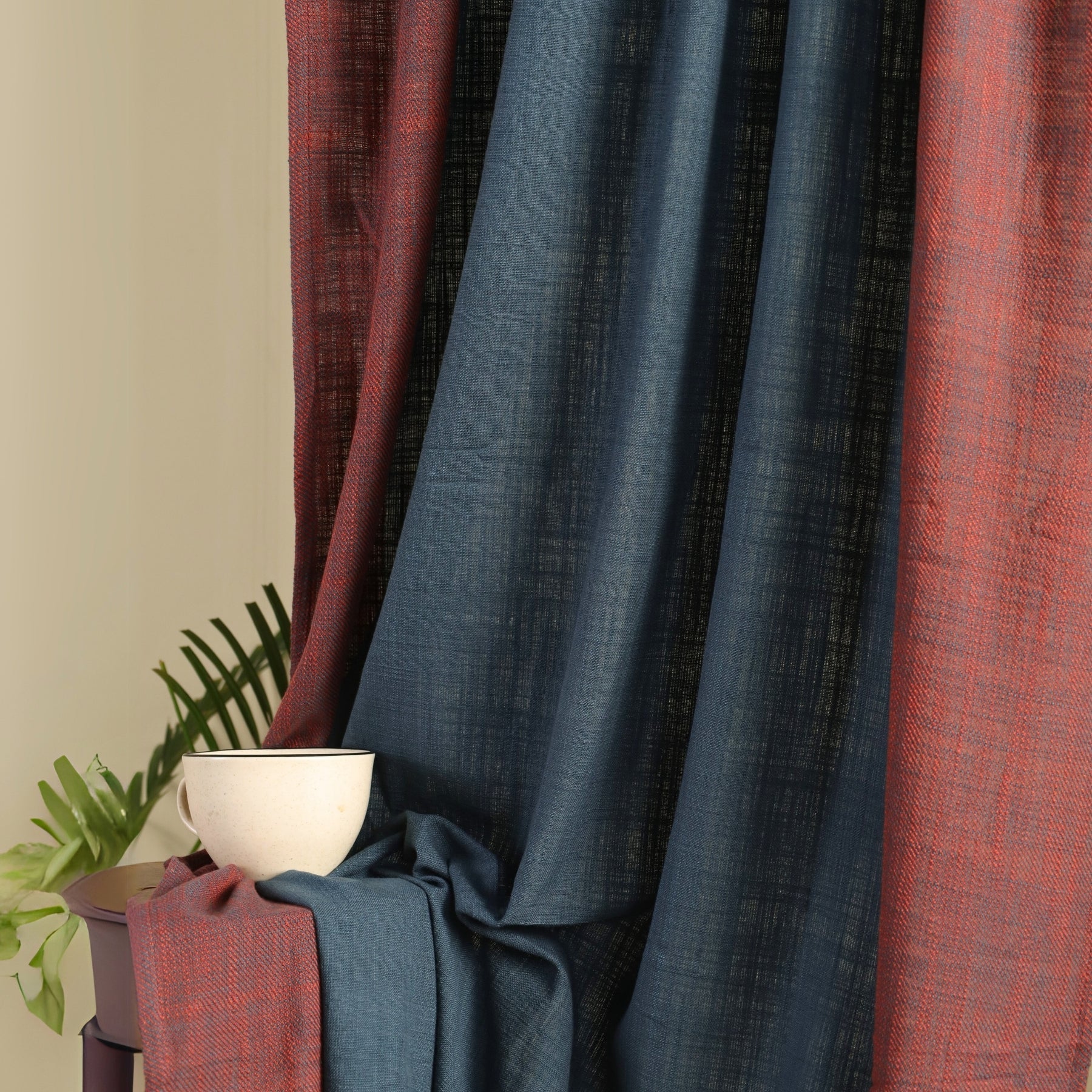 Crafted from pure cotton fabric, the refined texture of this navy blue curtain interwoven with rust red on the side panels create a chic yet inviting atmosphere, be it in the living room or the bedroom and effortlessly complements all decor styles. Pair it with printed curtains to enhance your space, making your room feel more open and airy.