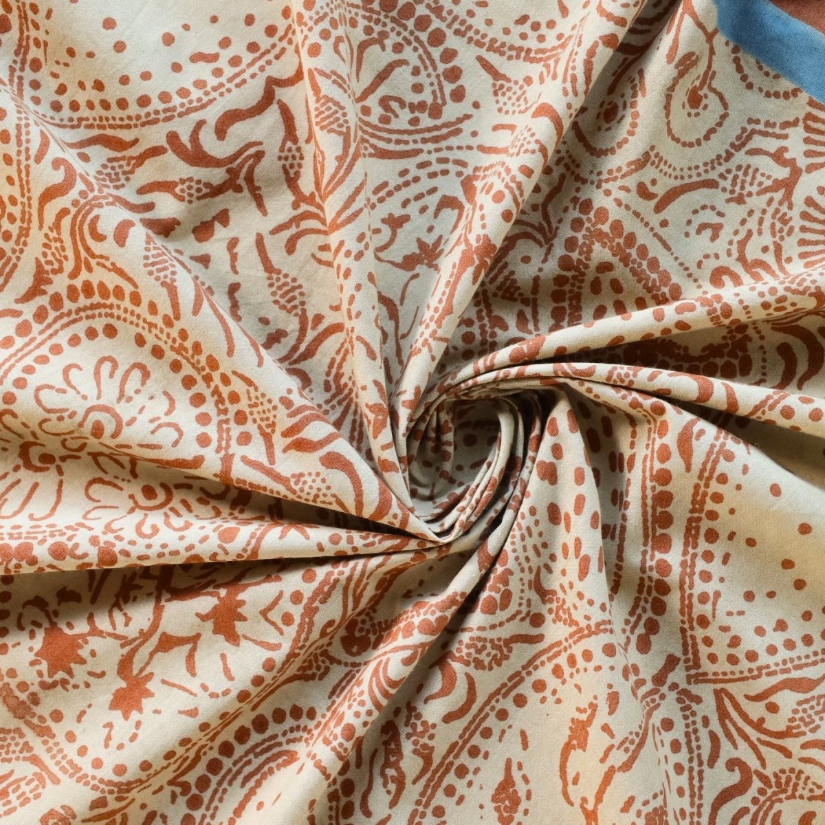 Inspired by the timeless elegance of vintage Chintz, this handcrafted bed sheet and pillow cover set in Ivory, Brick Red, and Navy Blue brings old-world charm to your bedroom. Drawing from 18th-century floral textures and hand-block printing by expert artisans, this piece blends traditional craftsmanship with modern design.